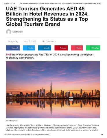 4/11/25, 3:23 PM UAE Tourism Generates AED 45 Billion in Hotel Revenues in 2024, Strengthening Its Status as a Top Global Tourism Brand - Busin…