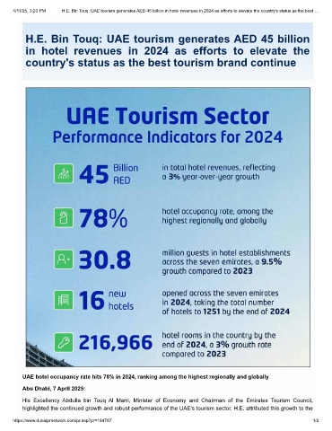 4/11/25, 3:23 PM H.E. Bin Touq: UAE tourism generates AED 45 billion in hotel revenues in 2024 as efforts to elevate the country's status as the best …