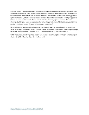 Bin Touq added, "The UAE continues to advance its national efforts to develop innovative tourism