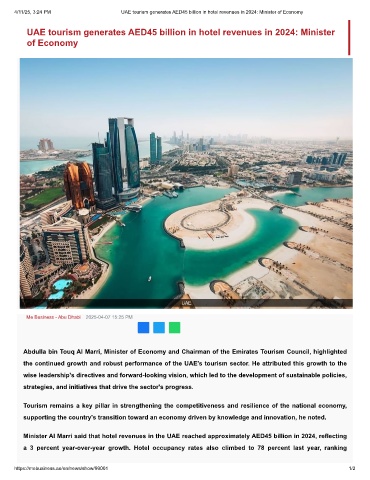 4/11/25, 3:24 PM UAE tourism generates AED45 billion in hotel revenues in 2024: Minister of Economy