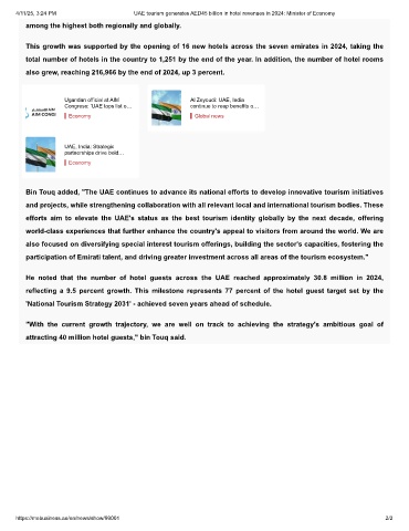 4/11/25, 3:24 PM UAE tourism generates AED45 billion in hotel revenues in 2024: Minister of Economy