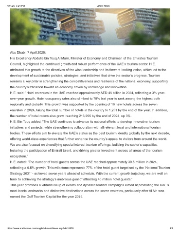 Council, highlighted the continued growth and robust performance of the UAE’s tourism sector. H.E.