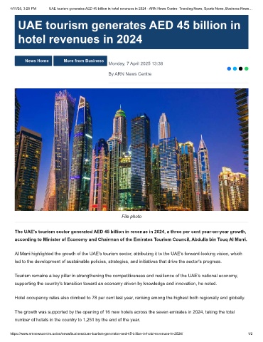 4/11/25, 3:25 PM UAE tourism generates AED 45 billion in hotel revenues in 2024 - ARN News Centre- Trending News, Sports News, Business News…