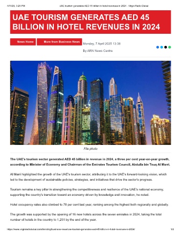4/11/25, 3:25 PM UAE tourism generates AED 45 billion in hotel revenues in 2024 - Virgin Radio Dubai