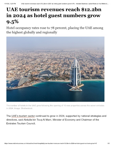 4/11/25, 3:25 PM UAE tourism revenues reach $12.2bn in 2024 as hotel guest numbers grow 9.5% - Arabian Business: Latest News on the Middle E…