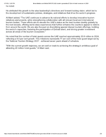 https://www.ttnworldwide.com/Article/384570/UAE-tourism-generates-$12bn-in-hotel-revenues-in-2024 2/2