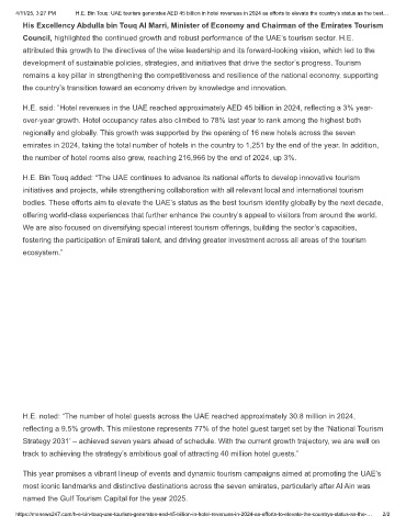 4/11/25, 3:27 PM H.E. Bin Touq: UAE tourism generates AED 45 billion in hotel revenues in 2024 as efforts to elevate the country’s status as the best…