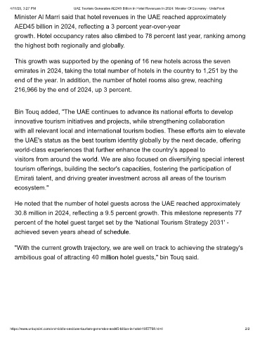 4/11/25, 3:27 PM UAE Tourism Generates AED45 Billion In Hotel Revenues In 2024: Minister Of Economy - UrduPoint
