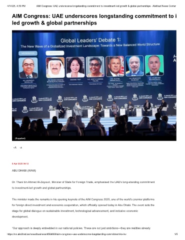 4/14/25, 4:30 PM AIM Congress: UAE underscores longstanding commitment to investment-led growth & global partnerships - Aletihad News Center