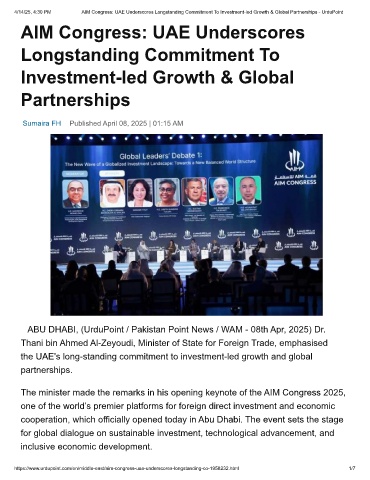 4/14/25, 4:30 PM AIM Congress: UAE Underscores Longstanding Commitment To Investment-led Growth & Global Partnerships - UrduPoint