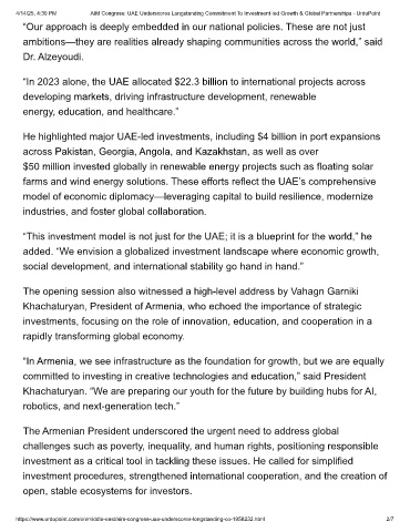 4/14/25, 4:30 PM AIM Congress: UAE Underscores Longstanding Commitment To Investment-led Growth & Global Partnerships - UrduPoint
