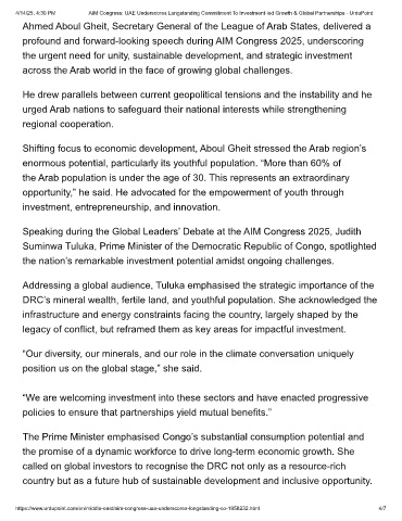 4/14/25, 4:30 PM AIM Congress: UAE Underscores Longstanding Commitment To Investment-led Growth & Global Partnerships - UrduPoint