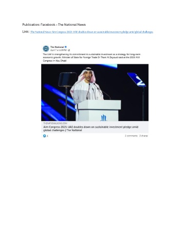 Publication: Facebook – The National News Link: The National News: Aim Congress 2025: UAE doubles down on sustainable investment pledge amid global challenges