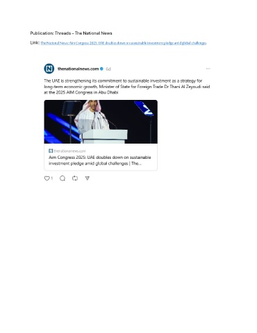 Publication: Threads – The National News Link: The National News: Aim Congress 2025: UAE doubles down on sustainable investment pledge amid global challenges