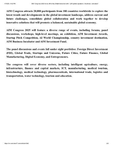 4/10/25, 4:42 PM AIM Congress 2025 kicks off in Abu Dhabi tomorrow with 1,250 global speakers | Business | emirates7