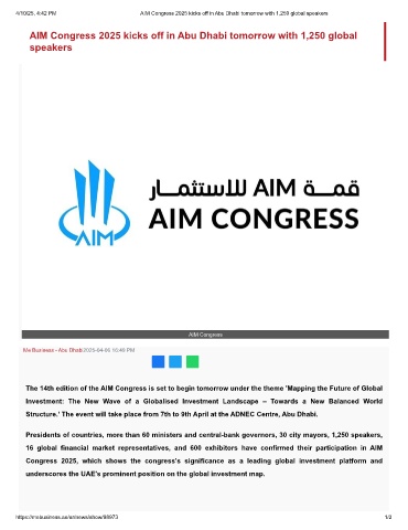 4/10/25, 4:42 PM AIM Congress 2025 kicks off in Abu Dhabi tomorrow with 1,250 global speakers