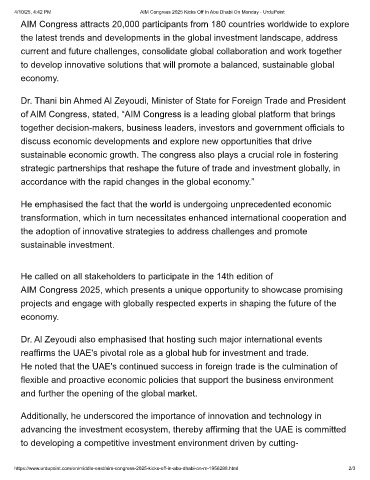 4/10/25, 4:42 PM AIM Congress 2025 Kicks Off In Abu Dhabi On Monday - UrduPoint