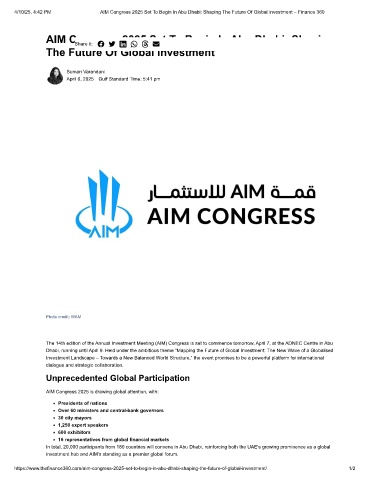 4/10/25, 4:42 PM AIM Congress 2025 Set To Begin In Abu Dhabi: Shaping The Future Of Global Investment – Finance 360