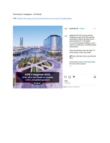 Publication: Instagram – Al Etihad Link: Al Etihad: AIM Congress 2025 kicks off in Abu Dhabi tomorrow with 1,250 global speakers