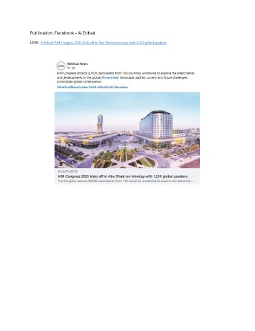 Publication: Facebook – Al Etihad Link: Al Etihad: AIM Congress 2025 kicks off in Abu Dhabi tomorrow with 1,250 global speakers