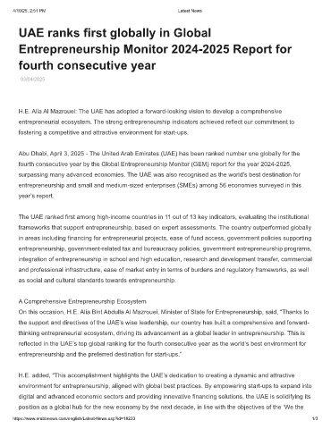 Abu Dhabi, April 3, 2025 - The United Arab Emirates (UAE) has been ranked number one globally for the