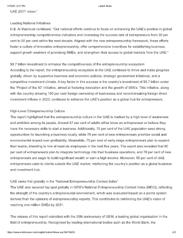 The UAE also secured top spot globally in GEM’s National Entrepreneurship Context Index (NECI), reflecting