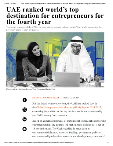 4/10/25, 2:52 PM UAE ranked world’s top destination for entrepreneurs for the fourth year - Fast Company Middle East | The future of tech, business …