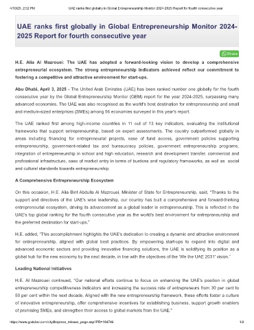 4/10/25, 2:52 PM UAE ranks first globally in Global Entrepreneurship Monitor 2024-2025 Report for fourth consecutive year