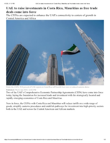 4/7/25, 5:15 PM UAE to raise investments in Costa Rica, Mauritius as free trade deals come into force