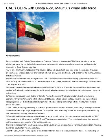 https://gulftime.ae/uaes-cepa-with-costa-rica-mauritius-come-into-force/ 1/2