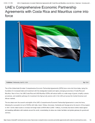 4/7/25, 5:15 PM UAE’s Comprehensive Economic Partnership Agreements with Costa Rica and Mauritius come into force - Business - Economy and …