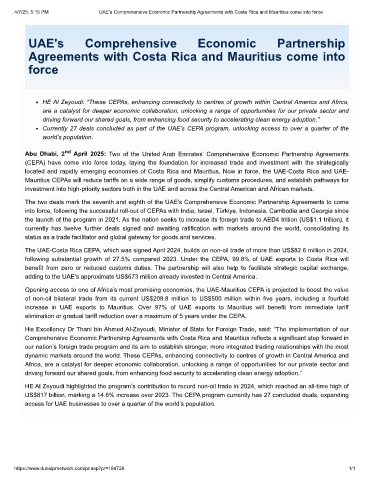 4/7/25, 5:15 PM UAE's Comprehensive Economic Partnership Agreements with Costa Rica and Mauritius come into force