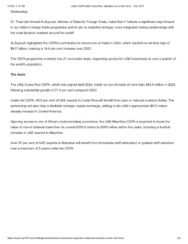 4/7/25, 5:16 PM UAE's CEPA with Costa Rica, Mauritius come into force - City 1016