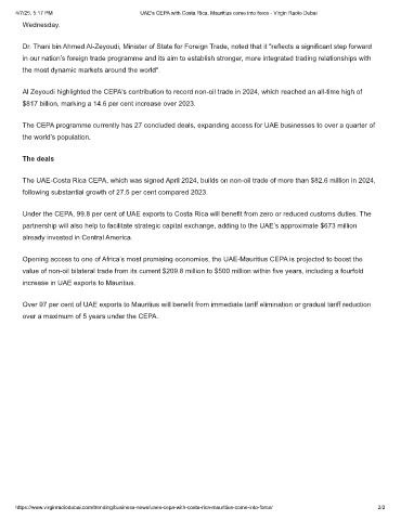 4/7/25, 5:17 PM UAE's CEPA with Costa Rica, Mauritius come into force - Virgin Radio Dubai
