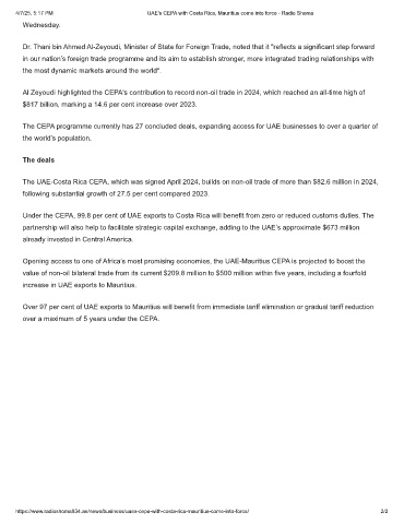 4/7/25, 5:17 PM UAE's CEPA with Costa Rica, Mauritius come into force - Radio Shoma