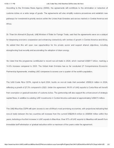 4/7/25, 5:17 PM UAE-Costa Rica, UAE-Mauritius CEPAs come into force