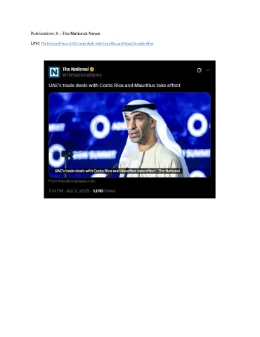Publication: X – The National News Link: The National News: UAE’s trade deals with Costa Rica and Mauritius take effect