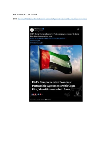 Publication: X – UAE Forsan Link: UAE Forsan: UAE’s Comprehensive Economic Partnership Agreements with Costa Rica, Mauritius come into force