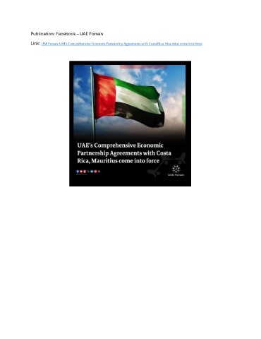 Publication: Facebook – UAE Forsan Link: UAE Forsan: UAE’s Comprehensive Economic Partnership Agreements with Costa Rica, Mauritius come into force