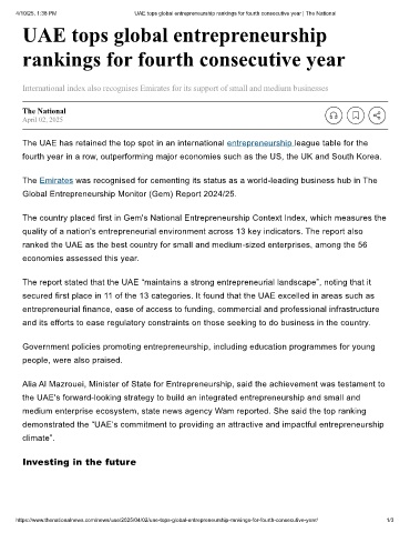 https://www.thenationalnews.com/news/uae/2025/04/02/uae-tops-global-entrepreneurship-rankings-for-fourth-consecutive-year/ 1/3