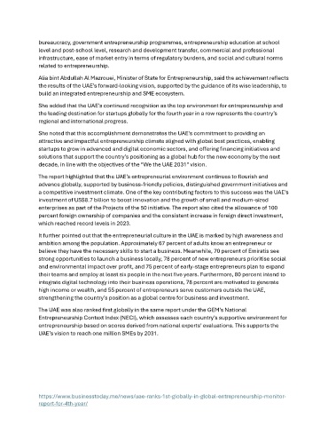She added that the UAE’s continued recognition as the top environment for entrepreneurship and
