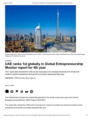 4/10/25, 1:40 PM UAE ranks 1st globally in Global Entrepreneurship Monitor report for 4th year