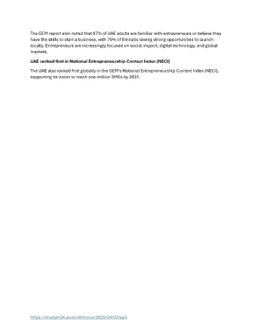 The UAE also ranked first globally in the GEM’s National Entrepreneurship Context Index (NECI),