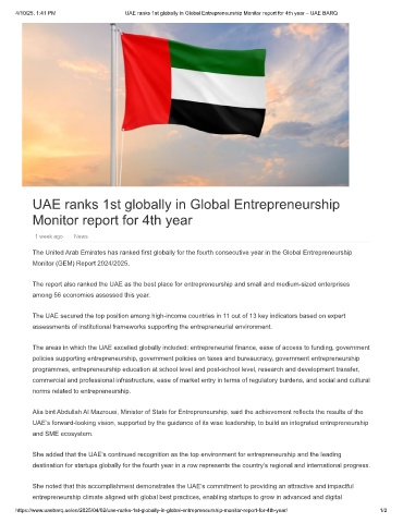 https://www.uaebarq.ae/en/2025/04/02/uae-ranks-1st-globally-in-global-entrepreneurship-monitor-report-for-4th-year/ 1/2