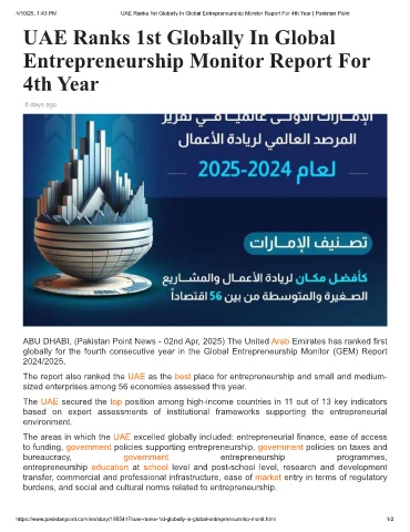 https://www.pakistanpoint.com/en/story/1955417/uae-ranks-1st-globally-in-global-entrepreneurship-monit.html 1/2