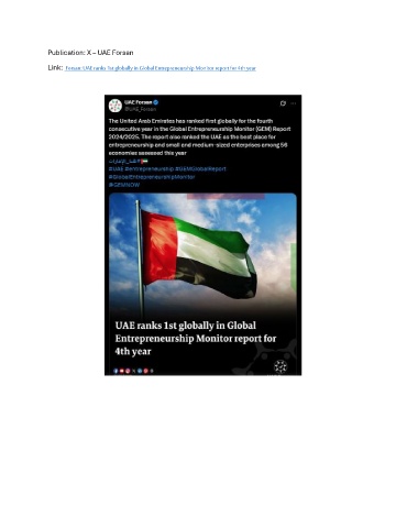 Publication: X – UAE Forsan Link: Forsan: UAE ranks 1st globally in Global Entrepreneurship Monitor report for 4th year