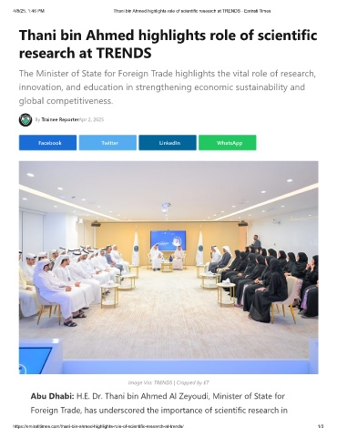 4/8/25, 1:46 PM Thani bin Ahmed highlights role of scientific research at TRENDS - Emirati Times