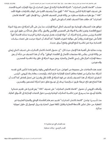 ،ةﺪﺤﺘﳌا ﺔﻴﺑﺮﻌﻟا تارﺎﻣﻹا ﺔﻟود ﰲ تاردﺎﺼﻟا ﻞﻳﻮﻤﺗ ﰲ ةﺪﺋاﺮﻟا ﺔﻳدﺎﺤﺗﻻا ﺔﻛﴩﻟا ،”تاردﺎﺼﻟا نﺎﻤﺘﺋﻻ دﺎﺤﺗﻻا“ ﺖﻠﺼﺣ