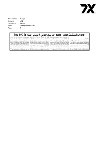 Publication: Al Fajr Country: UAE Circulation: 34,596 Date: 04 September 2025 Page: 4