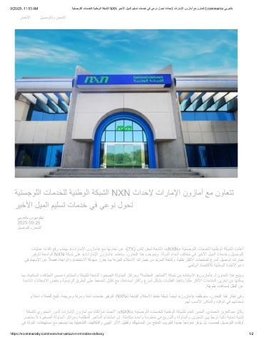 9/26/25, 11:53 AM ﺔﯾﺗﺳﺟوﻠﻟا تﺎﻣدﺧﻠﻟ ﺔﯾﻧطوﻟا ﺔﻛﺑﺷﻟا NXN رﯾﺧﻷا لﯾﻣﻟا مﯾﻠﺳﺗ تﺎﻣدﺧ ﻲﻓ ﻲﻋوﻧ لوﺣﺗ ثادﺣﻹ تارﺎﻣﻹا نوزﺎﻣأ ﻊﻣ نوﺎﻌﺗﺗ | commerce ﻲﺑرﻌﻟﺎﺑ